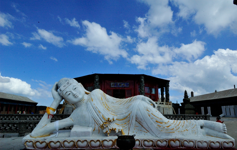 东台又名望海峰,位于台怀镇东13千米,海拔2 795米。有始建于隋代、后历代重修的望海寺,寺内供聪明文殊菩萨。台顶还有在原址上新建的望海楼,登临远眺,可望浩渺云海,观瑰丽日出。古人有诗云:“圆光化现珠千颗,离照初升火一团。”远望山形,犹如一头站立的巨象;居顶环视,又似一个特大的龟甲。