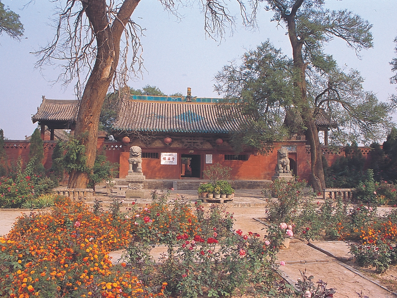 镇国寺五代十国是中国历史上封建割据的年代。“安史之乱”导致唐室衰微,封建王朝纷纷建立,50多年的战火兵燹,历史虽短,但给当时的生产力造成了一定的破坏,山西地区在兵荒马乱的年代,仍能保存3座五代时期的木构建筑,不能不说是一个奇迹。 镇国寺是保存至现在的3座五代建筑中的一处,明清时寺院颓废,清嘉庆二十年(公元1815年)按原样重修了万佛殿。全寺分前后两进院落,布局严谨,寺中的山门、钟鼓二楼、厢房、东西配殿、三佛楼等建筑,为明清时期的遗构,山门内的天王殿塑有四大天王,俗称“风调雨顺”,前院现存有20多通石碑,记载了镇国寺的发展史。观音殿、地藏殿和三佛楼建在后院,殿内的塑像比例匀称,面容端庄,三佛楼的壁画为佛传故事题材,所画人物形神俱佳,色泽清晰,是明代时期的作品。 准确地说,镇国寺的万佛殿才是五代时期的建筑。现存的万佛殿创建于五代时北汉天会七年(公元963年),面阔和进深均为三间,平面呈方形,表现为中国早期的建筑特征,单檐歇山顶,出檐深远。大殿斗拱分别为柱头铺作、补间铺作、转角铺作等三种,出四跳,双抄双下昂,重拱偷心造,整垛斗拱占柱高的2/3。进入殿内,举目上望,脊槫下题有“准大汉天会七年岁次癸亥叁月造”的字样,四椽栿上设平梁,侏儒柱安置在平梁之上,五代时期的这种做法,改变了唐代的只有大叉手的构造,使梁架更加稳固。殿内的释迦、菩萨、弟子、天王等塑像,共有11尊,是与大殿同时的艺术作品。