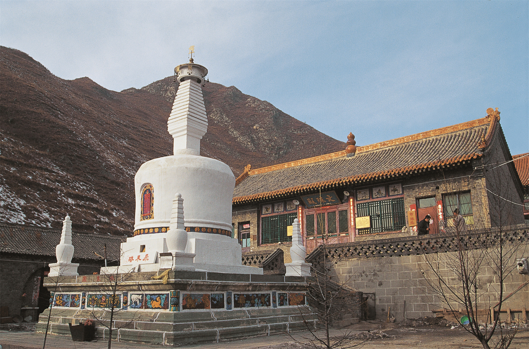 宝华寺在台怀镇北3.5千米的塔儿沟,背依北台,东西临山,面南开阔,瑞草奇葩,风景极佳。 宝华寺,原名杂华庵,为明代僧人正参所建,是一座华严道场,康熙五十年(1711),札萨克大喇嘛老藏丹贝重建寺宇,成为黄教道场。同治十二年(1873),寺僧又予重修。光绪二十九年(1903),挂匾改名“宝华寺”。1990年,住持演林又新建天王殿、文殊殿、东西寮房和塔。1998年,他又建了金碧辉煌的大雄宝殿。 现在的宝华寺,坐北面南,中轴线上从南至北依次有天王殿(山门)、文殊殿和大雄宝殿。天王殿面宽3间,单檐硬山顶。殿的正面,供大肚弥勒佛,袒胸露腹,箕踞而坐。背后为手执降魔杵的韦驮将军。两山墙彩塑身材魁梧、横眉怒眼、驱邪镇妖的四大天王。天王殿两侧为钟鼓二楼,其作用是,破长夜,惊睡眠,觉昏衢,去冥昧,唤醒芸芸众生。天王殿西为观音殿,面宽3间,单檐硬山顶,内供滴水观音,手持净瓶,为众生施舍甘露。文殊殿,面宽三间,单檐硬山顶。殿内供文殊菩萨,半跏趺坐于狻猊背上。该院有东西配房各5间,东为客堂,西为僧舍,均为单檐硬山顶。大雄宝殿,面宽7间,25米,进深3间,14米,单檐歇山顶,黄色琉璃瓦覆顶,古朴雄壮,金光灿灿。殿内佛坛上供横三世佛,殿之东西两山墙间,彩塑着姿态各异的十八罗汉。大殿东为五观堂,九间,单檐歇山顶,前出廊,显得宏伟高大,相当气派。大殿西为念佛堂,左右对称,格外整齐。 在天王殿和文殊殿间的院中,高高矗立着一座燃灯佛母塔,这就是乾隆年间,格隆尊追仿照尼泊尔“掐荣卡笑”塔兴建之塔。该塔通高10米,是一金刚宝座式的白塔。在大塔的须弥座和覆钵间置有许多燃灯佛,故名燃灯佛母塔。因它是仿照“掐荣卡笑”塔所建,相传其塔座飞到西藏,塔身飞到西宁塔儿寺,塔刹飞到了五台山。这也从另一个侧面说明了五台山的藏传佛教是从尼泊尔、西藏、青海传来的,所以,此塔俗称“飞来塔”。因此蒙、藏信众朝拜五台山时,都要至此绕塔礼拜。同时,这也说明它是中尼友好的象征。 宗喀巴(1357—1419),亦名罗卜藏扎克巴,为藏传佛教格鲁派的创始人。以这派僧人都戴尖顶黄帽,所以人们称其派为黄教。明永乐十二年(1414)春,他派弟子释迦也失至五台山弘法传教。从此,五台山就有了黄教。 藏传佛教萨迦派五祖、大元帝师八思巴曾于公元1257年夏天至五台山,卓锡于寿宁寺。他在五台山瞻礼了五台山诸寺和五座台顶后,写下了《文殊菩萨坚固法轮赞》等诗,颂扬五台山文殊道场。