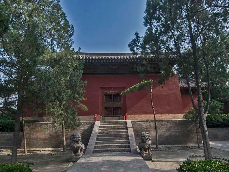 青龙寺 位于稷山县城西4千米的马村西隅。始建于唐龙朔二年 (662),元至元二十六年(1289)重建腰殿,至正十一年(1351)重修大雄宝殿,明清两代屡有修葺。现存建筑腰殿、大雄宝殿及垛殿为元代原构,余皆明清所建。坐北朝南,占地面积6790平方米,呈二进院落。前院有山门、十王殿、腰殿,腰殿两侧有祖师殿和无名殿;后院有大雄宝殿,两侧为伽蓝殿、护法殿及东西厢房。 寺内尤为重要的是大雄宝殿和腰殿内保存有精美的壁画 185平方米。其中大雄宝殿内东西两壁有元末和明代补绘的壁画65平方米,据题记绘于明洪武五年(1372)和十八年(1385)。其中西壁南北两隅,部分地保存着元代原作。腰殿内四壁满绘壁画,为青龙寺壁画中的精华。除北壁一部分为明代绘制外,余皆元代所作。共有125平方米,内容为儒、释、道三界仙佛鬼神水陆画场。