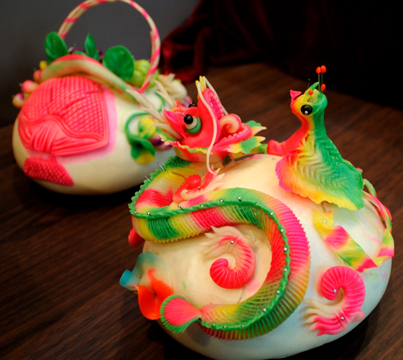 新绛面塑(新绛县)新绛面塑,俗称花馍。据史书记载,早在宋代,人们就开始用白面塑成猪、羊,代替真猪、真羊祭祀。此后,这种既经济又实用的办法便在绛州一带沿袭下来。人们根据岁时节令,用白面塑成动物、瓜果、花卉等各种不同的物品,用于祭奠亡魂、乞求神灵,以及串亲访友、人情往来。元宵节,花馍多捏猪、牛、羊、棉花篮、小麦囤、卷包等以求得来年六畜兴旺,五谷丰登,财源滚滚;端午节以老虎为主,以求防病祛邪;七月十五捏面人,是为纪念民族英雄岳飞;八月十五中秋节以月饼馍、石榴、桃为主;过年多捏枣山、枣糕,人们一层面、一层枣往上摆,有的成塔形,有的为糕状。生日、满月、老人过寿有“老虎腿”、“八仙庆寿”等以求茁壮成长或长命百岁。 新绛面塑多达60余种,由于受面团软和、发酵所限,所塑之物,只求神似,不求形似,它似陶非陶,像瓷非瓷,极富观赏性。