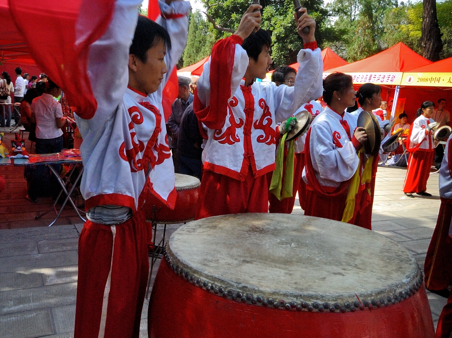 太原锣鼓(太原市)太原锣鼓是由历史久远的“社鼓”演变传承而来的,流行于太原地区及晋中、吕梁部分地区。其节奏雏形可追溯到先秦时期,其结构形式可追溯到南宋宁宗年间(公元1195-1224年)。 以铙、钹的特有声响为主体构成锣鼓曲是太原锣鼓的最大特征,其粗犷豪放、雄宏激越的艺术风格在全国独树一帜。特点刚劲有力,层次分明,铿锵自然;其动作刚烈舒展,大刀阔斧,粗犷阳刚;其节奏激越鲜明,紧锣密鼓,击速急快;其表演铙扬钹舞,绝活频繁,激奋壮观。 “绛州的鼓、威风的锣、太原锣鼓舞大钹”是人们对山西三大鼓种的赞誉。号称铙、钹之乡的太原锣鼓在击镲方面有着惊人非凡的技巧,不仅能用各种手法,还能在演奏中边击边舞,矫健威武的身姿伴着铙钹上下翻飞,白光翻滚,场景令人振奋。
